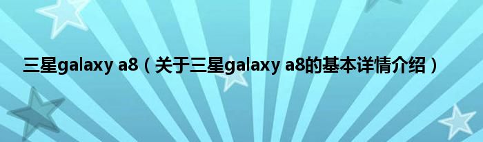 本文关于三星galaxy a8的基本详情介绍就讲解完毕,希望对大家有所帮助。