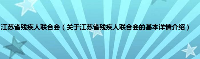 本文关于江苏省残疾人联合会的基本详情介绍就讲解完毕,希望对大家有所帮助。