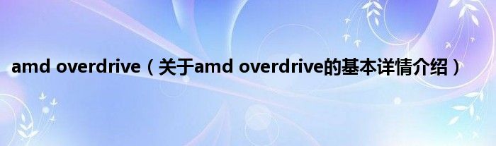 本文关于amd overdrive的基本详情介绍就讲解完毕,希望对大家有所帮助。