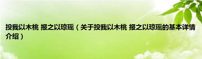投我以木桃 报之以琼瑶(关于投我以木桃 报之以琼瑶的基本详情介绍)