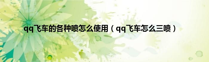 以上就是【qq飞车的各种喷怎么使用,qq飞车怎么三喷】相关内容。