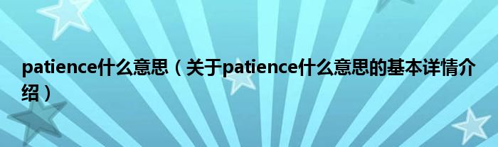 本文关于patience什么意思的基本详情介绍就讲解完毕,希望对大家有所帮助。