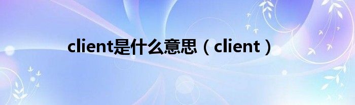 大家好,小问来为大家解答以上问题。client是什么意思,client这个很多人还不知道,现在让我们一起来看看吧!