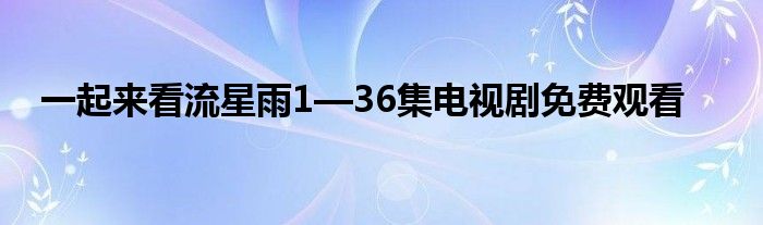 大家好,小问来为大家解答以上问题。一起来看流星雨1—36集电视剧免费观看这个很多人还不知道,现在让我们一起来看看吧!