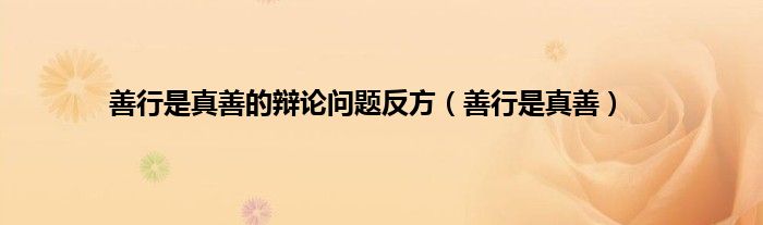 大家好,小问来为大家解答以上问题。善行是真善的辩论问题反方,善行是真善这个很多人还不知道,现在让我们一起来看看吧!