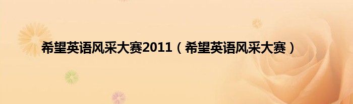 大家好,小问来为大家解答以上问题。希望英语风采大赛2011,希望英语风采大赛这个很多人还不知道,现在让我们一起来看看吧!