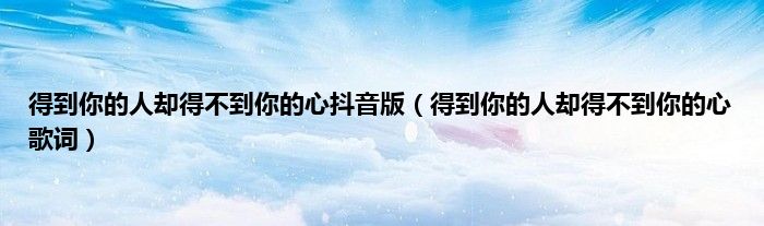 大家好,小问来为大家解答以上问题。得到你的人却得不到你的心抖音版,得到你的人却得不到你的心歌词这个很多人还不知道,现在让我们一起来看看吧!