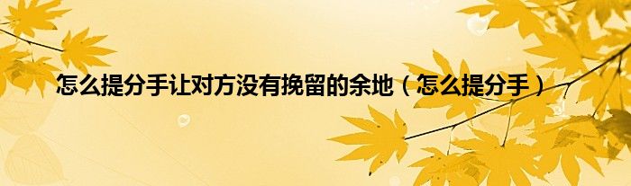 以上就是【怎么提分手让对方没有挽留的余地,怎么提分手】相关内容。