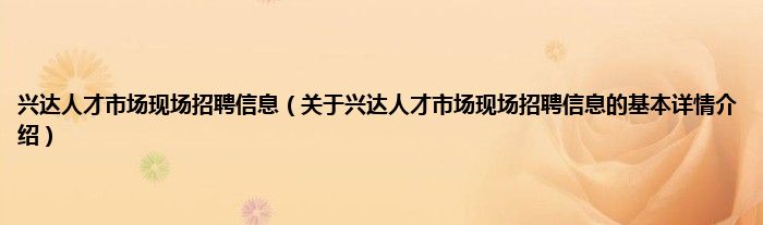 兴达人才市场现场招聘信息(关于兴达人才市场现场招聘信息的基本详情介绍)
