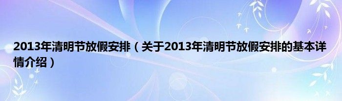 本文关于2013年清明节放假安排的基本详情介绍就讲解完毕,希望对大家有所帮助。