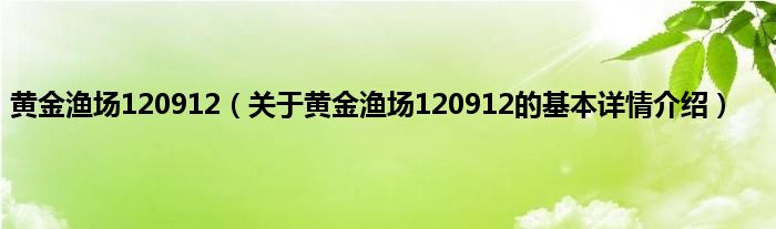 本文关于黄金渔场120912的基本详情介绍就讲解完毕,希望对大家有所帮助。