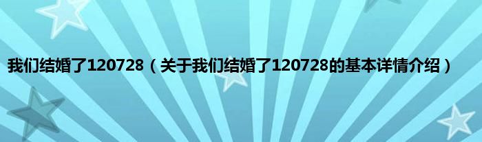 本文关于我们结婚了120728的基本详情介绍就讲解完毕,希望对大家有所帮助。