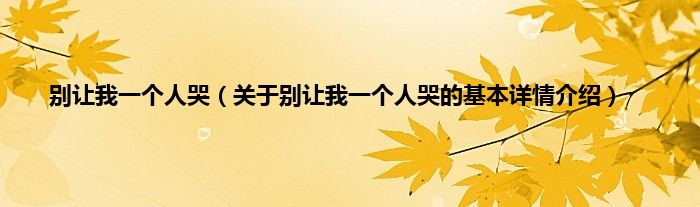 本文关于别让我一个人哭的基本详情介绍就讲解完毕,希望对大家有所帮助。