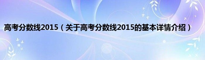 本文关于高考分数线2015的基本详情介绍就讲解完毕,希望对大家有所帮助。