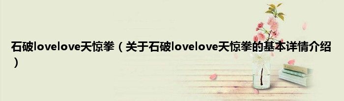 本文关于石破lovelove天惊拳的基本详情介绍就讲解完毕,希望对大家有所帮助。