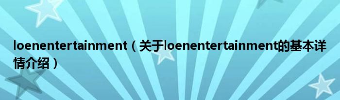 大家好我是小蝌蚪,loenentertainment,关于loenentertainment的基本详情介绍很多人还不知道,那么现在让我们一起来看看吧!