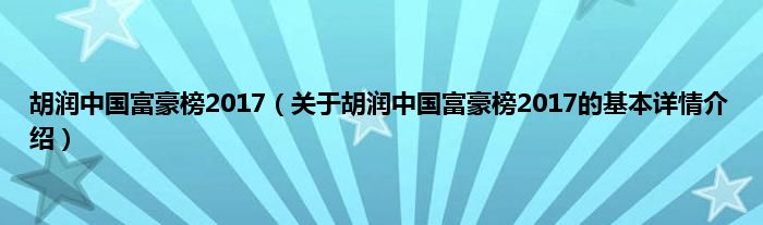 本文关于胡润中国富豪榜2017的基本详情介绍就讲解完毕,希望对大家有所帮助。