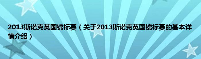本文关于2013斯诺克英国锦标赛的基本详情介绍就讲解完毕,希望对大家有所帮助。