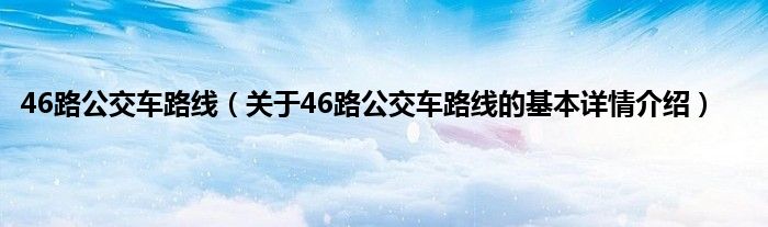 本文关于46路公交车路线的基本详情介绍就讲解完毕,希望对大家有所帮助。