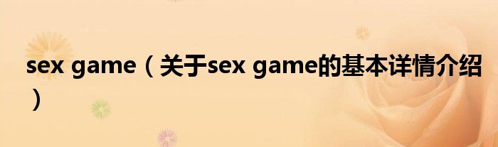本文关于sex game的基本详情介绍就讲解完毕,希望对大家有所帮助。