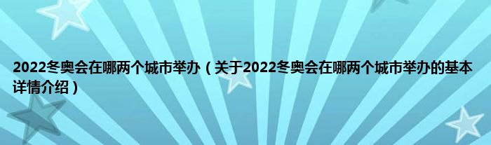 本文关于2022冬奥会在哪两个城市举办的基本详情介绍就讲解完毕,希望对大家有所帮助。