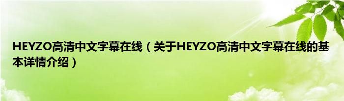 本文关于HEYZO高清中文字幕在线的基本详情介绍就讲解完毕,希望对大家有所帮助。
