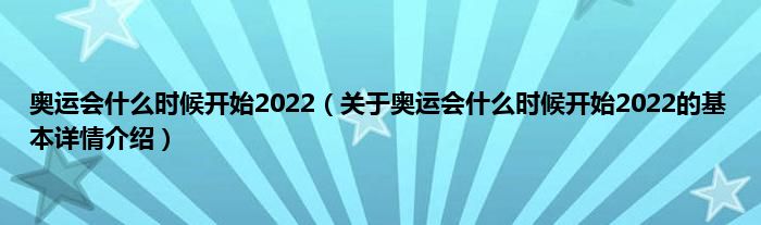 本文关于奥运会什么时候开始2022的基本详情介绍就讲解完毕,希望对大家有所帮助。