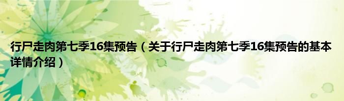 本文关于行尸走肉第七季16集预告的基本详情介绍就讲解完毕,希望对大家有所帮助。