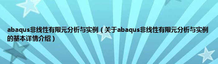 本文关于abaqus非线性有限元分析与实例的基本详情介绍就讲解完毕,希望对大家有所帮助。