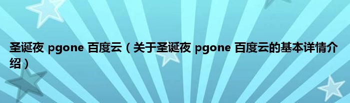 本文关于圣诞夜 pgone 百度云的基本详情介绍就讲解完毕,希望对大家有所帮助。