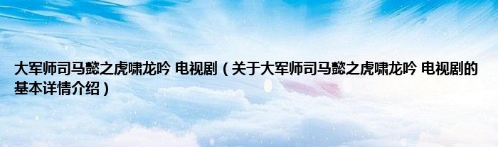 本文关于大军师司马懿之虎啸龙吟 电视剧的基本详情介绍就讲解完毕,希望对大家有所帮助。