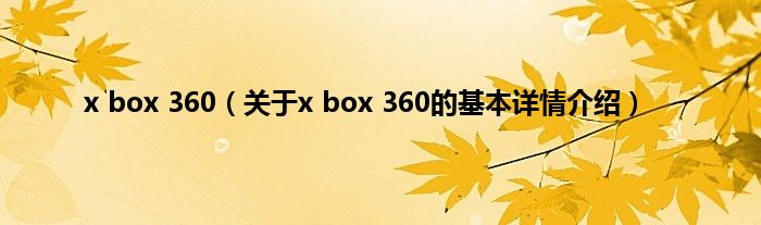 本文关于x box 360的基本详情介绍就讲解完毕,希望对大家有所帮助。