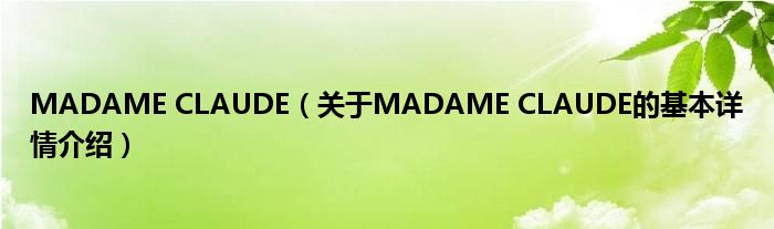 本文关于MADAME CLAUDE的基本详情介绍就讲解完毕,希望对大家有所帮助。