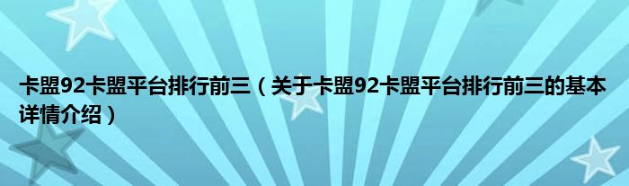 本文关于卡盟92卡盟平台排行前三的基本详情介绍就讲解完毕,希望对大家有所帮助。