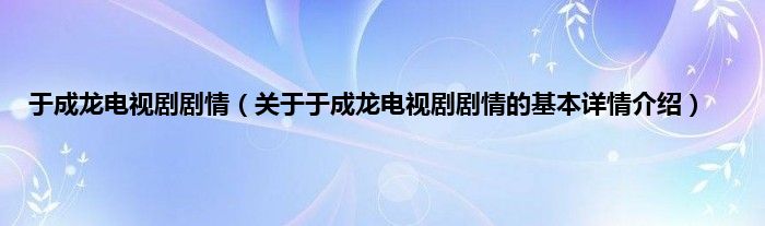 本文关于于成龙电视剧剧情的基本详情介绍就讲解完毕,希望对大家有所帮助。