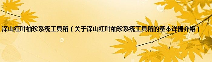 本文关于深山红叶袖珍系统工具箱的基本详情介绍就讲解完毕,希望对大家有所帮助。