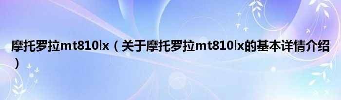 本文关于摩托罗拉mt810lx的基本详情介绍就讲解完毕,希望对大家有所帮助。