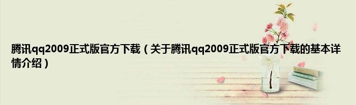 本文关于腾讯qq2009正式版官方下载的基本详情介绍就讲解完毕,希望对大家有所帮助。