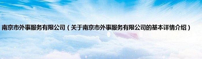 本文关于南京市外事服务有限公司的基本详情介绍就讲解完毕,希望对大家有所帮助。
