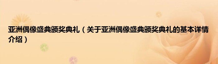 本文关于亚洲偶像盛典颁奖典礼的基本详情介绍就讲解完毕,希望对大家有所帮助。