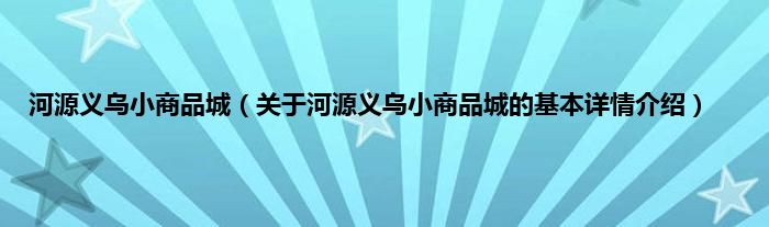 河源义乌小商品城(关于河源义乌小商品城的基本详情介绍)