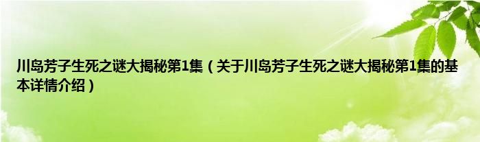 本文关于川岛芳子生死之谜大揭秘第1集的基本详情介绍就讲解完毕,希望对大家有所帮助。