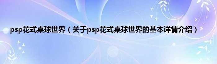 本文关于psp花式桌球世界的基本详情介绍就讲解完毕,希望对大家有所帮助。