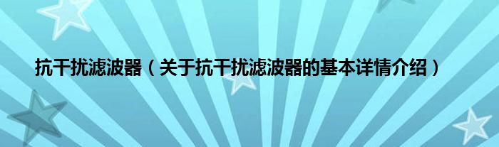本文关于抗干扰滤波器的基本详情介绍就讲解完毕,希望对大家有所帮助。