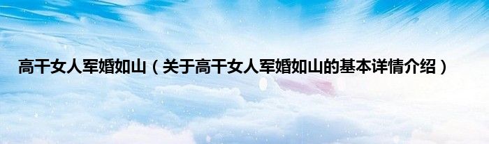 本文关于高干女人军婚如山的基本详情介绍就讲解完毕,希望对大家有所帮助。
