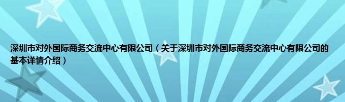 本文关于深圳市对外国际商务交流中心有限公司的基本详情介绍就讲解完毕,希望对大家有所帮助。