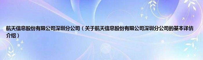 本文关于航天信息股份有限公司深圳分公司的基本详情介绍就讲解完毕,希望对大家有所帮助。