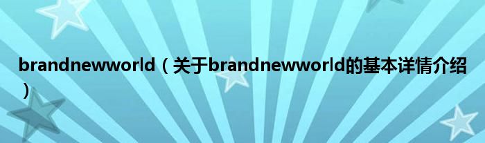 本文关于brandnewworld的基本详情介绍就讲解完毕,希望对大家有所帮助。