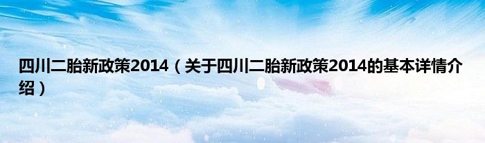 本文关于四川二胎新政策2014的基本详情介绍就讲解完毕,希望对大家有所帮助。