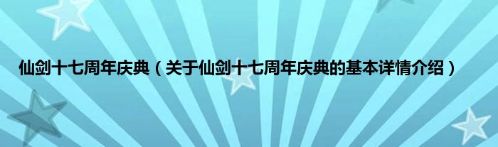 本文关于仙剑十七周年庆典的基本详情介绍就讲解完毕,希望对大家有所帮助。